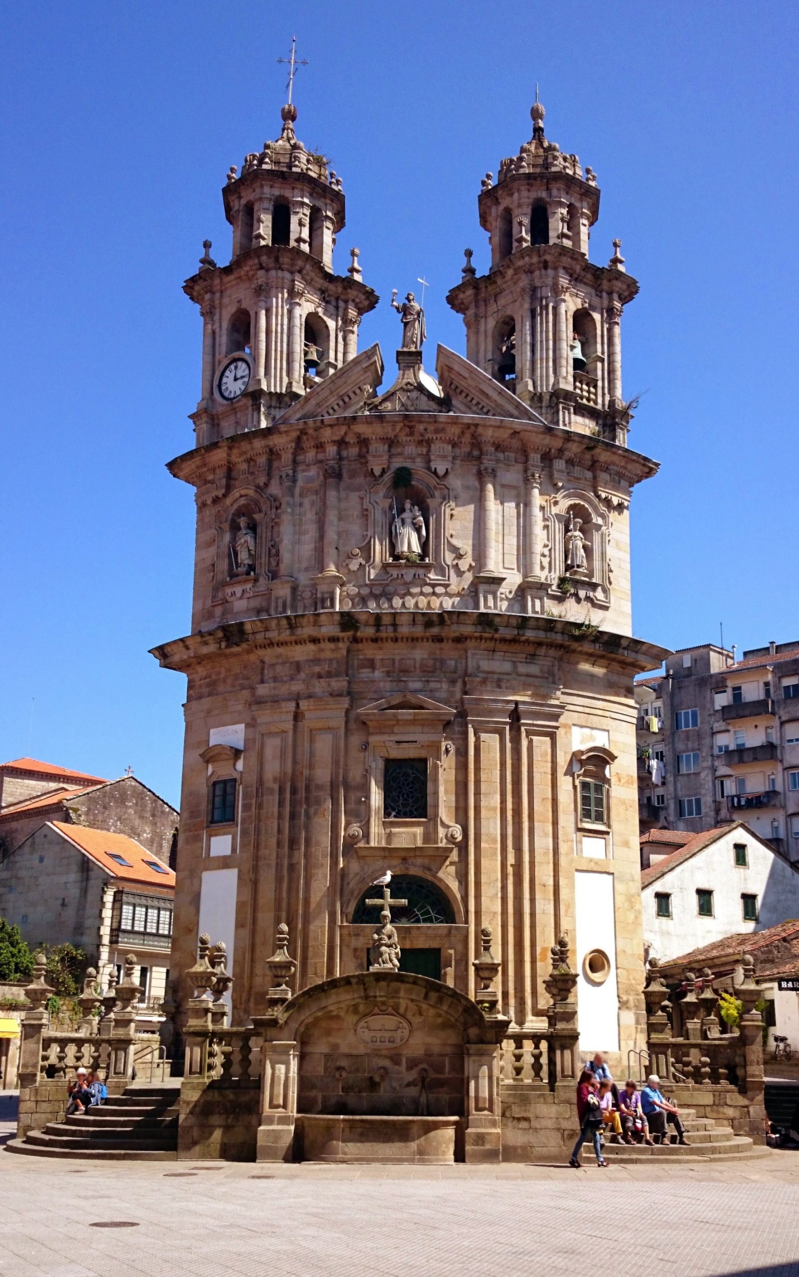 Un centro histórico peatonal, lleno de vida, plazas con soportales, callejuelas empedradas y ambiente local. Conserva uno de los conjuntos urbanos más auténticos de Galicia, ideal para pasear sin prisa. No te pierdas la Plaza de la Leña, la Plaza da Ferrería o la icónica Iglesia de la Virgen Peregrina, símbolo del Camino Portugués. Sus cafés, tiendas y terrazas bajo soportales te invitan a sentarte y disfrutar. Además, muchos edificios combinan tradición y vanguardia. Perfecto para empezar una ruta cultural por las Rías Baixas.