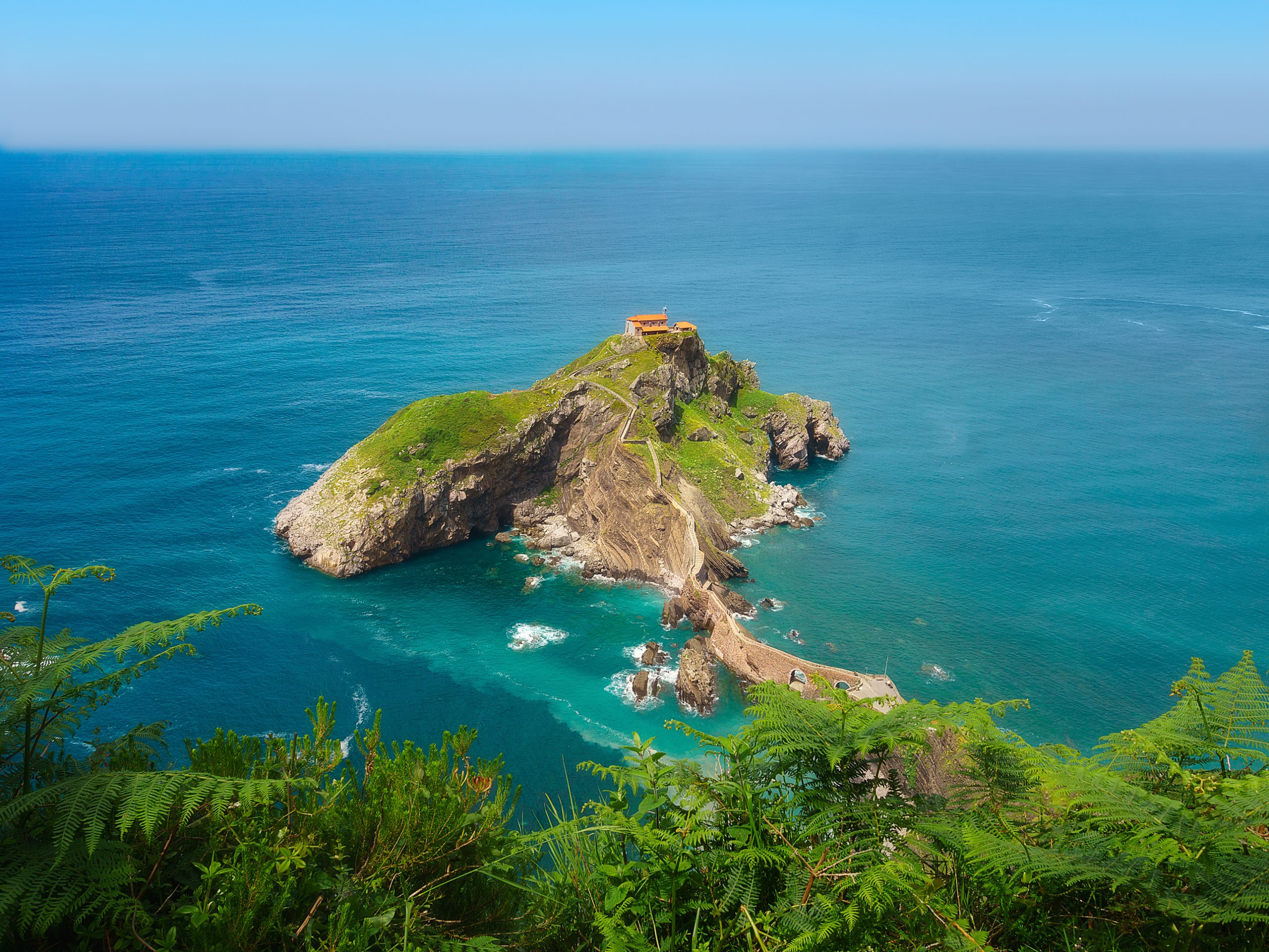 - San Juan de Gaztelugatxe literally means ‘rock castle’ in Basque. The islet is connected to the mainland by a stone bridge and 241 steps leading up to the chapel, where tradition invites visitors to ring the bell three times to bring good luck.